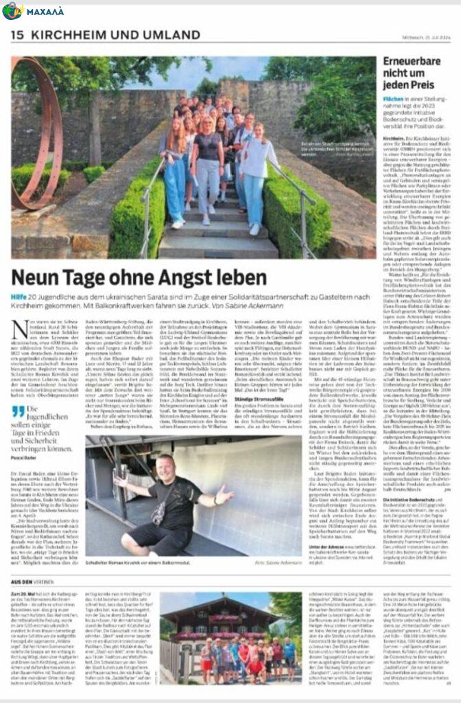 Про візит дітей з міста Сарата написала навіть міська газета Кіргхайм-Теку “Teckbote”.