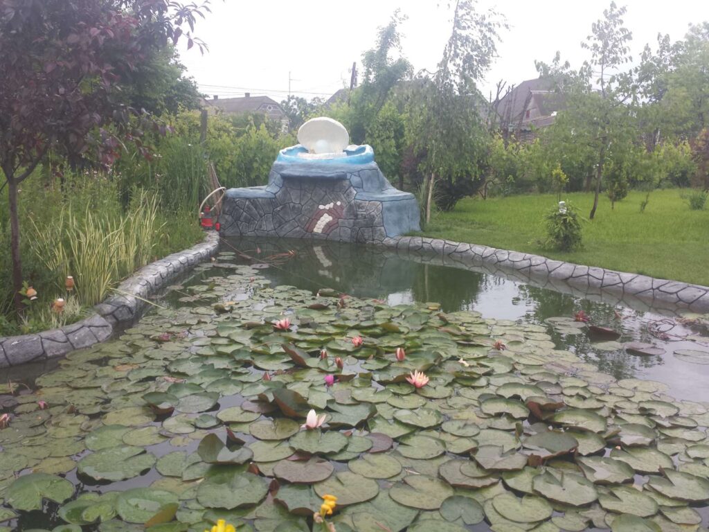 Наступні ставки Анжеліка не лише копала власними руками, поки чоловік працював в Одесі, а й самостійно їх бетонувала та засаджувала німфеями, які сьогодні щільно розрослися й густо вкрили всю поверхню води. Кожен новий ставок ставав більшим і гарнішим за попередній. Один із найбільших поділений на дві зони: для купання та для німфей, а також прикрашений фонтаном, що додає саду особливої чарівності.