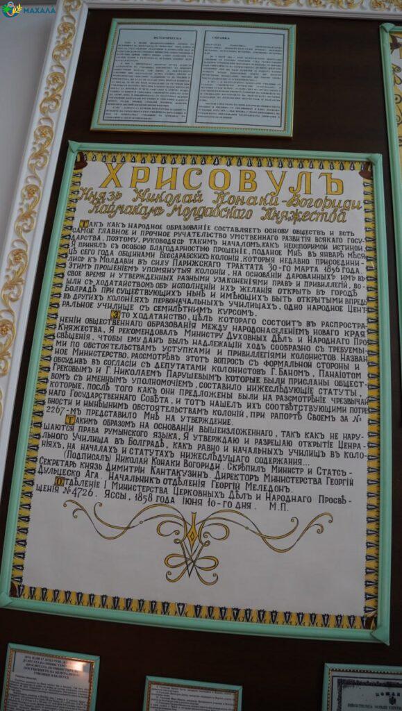 По-късно в гимназията е открита българска етнографска стая, която отразява историята и традициите на бесарабските българи.