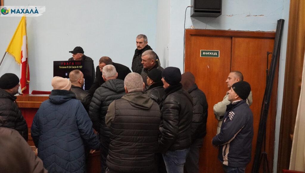Голова Болградської міської ради Сергій Димитрієв вирішив завершити сесію достроково. У відповідь на закриття сесії обурені жителі заблокували виходи із зали засідань, вимагаючи вирішення питання тут і зараз. Сергій Димитрієв був змушений покинути приміщення під охороною поліції.