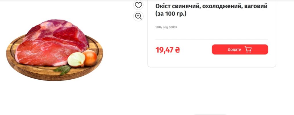 А ось до закупівлі свинини є питання. Її придбали по 220 грн/кг загальною вагою 1500 кг, однак у документації не уточнюється, яка саме частина туші мається на увазі під «м’якоттю». У м’ясному магазині журналістам пояснили, що під такою назвою часто мають на увазі окіст. Водночас середня вартість окіста становить 195–200 грн/кг, тож у такому разі свинину придбали дорожче, ніж на ринку.