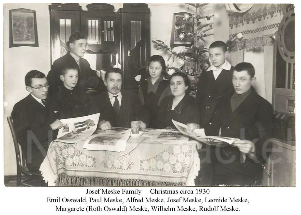 На груповому зображенні родина Меске, яка зібралася біля ялинки. Фото датоване 1930-м роком.