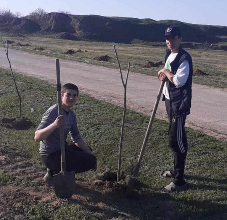 Двое парней, учащихся 11 класса – Николай Мадам и Иван Терзи самостоятельно организовали посадку 30-ти саженцев вдоль дороги по улице Мирная.