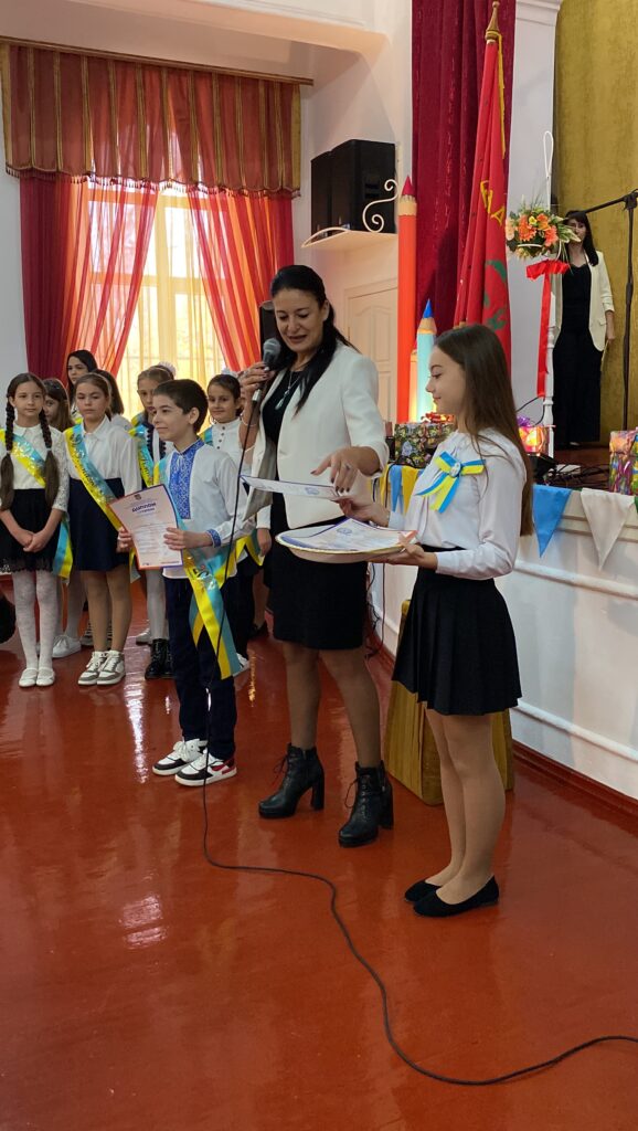 “Нарешті, цей день настав. Це свято з нетерпінням очікували всі, особливо п’ятикласники та шестикласники. Радію, що в нас з’явилась можливість запросити батьків наших учнів та провести свято. Наші п’ятикласники тільки встали на новий етап свого шкільного життя. На вас чекає дуже багато нових пригод, радощів та праці. Тільки вперед, вітаю вас у нашій великій гімназійній родині”, – звернулась до новоспечених гімназистів директорка Сніжана Скорич.
