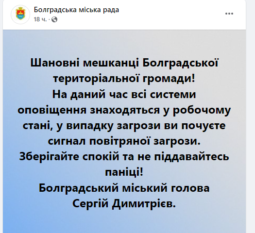 – сирена в городе исправна. Об этом написали на странице городского совета;