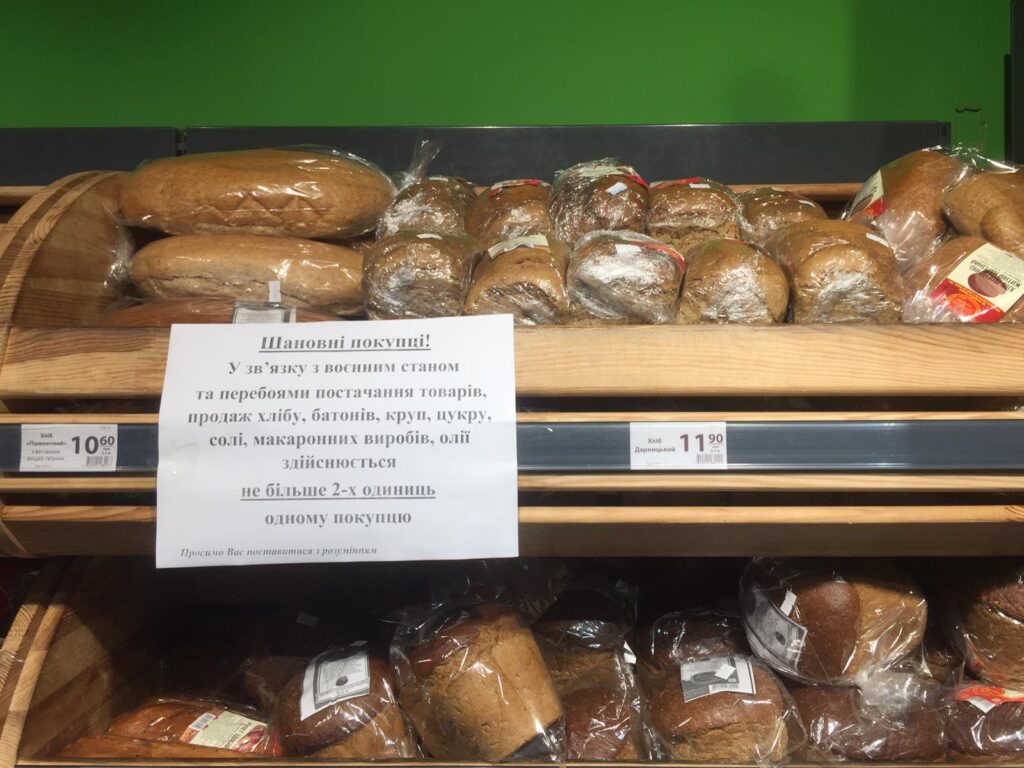 – дефицита хлеба нет, но отделом коммуникации АТБ введены ограничения на товары социальной группы: хлеб, батоны, крупы, сахар, соль, макаронные изделия, растительное масло, в количестве не больше 2 единиц одному покупателю. На кассах очереди, можно отплатить картой в АТБ.