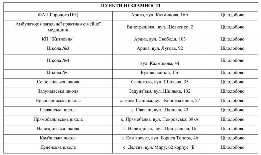 Усі об’єкти соціальної інфраструктури працюватимуть у звичному режимі. Водопостачання у місті Арциз здійснюватиметься погодинно: