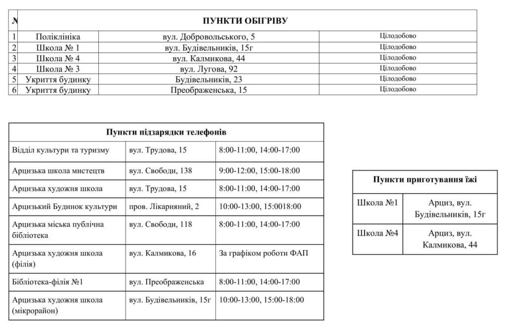 “З понеділка плануємо розгорнути пункти приготування їжі в мікрорайоні та містечку. У разі виявлення пошкоджень майна просимо негайно звертатися на Гарячу лінію або до Арцизької міської ради з відповідною заявою для проведення обстеження та визначення обсягів можливих збитків. Тримаємося. Гуртуємося. Віримо в наших енергетиків і в те, що світло якнайшвидше повернеться в домівки”, – наголосив міський голова Арциза.