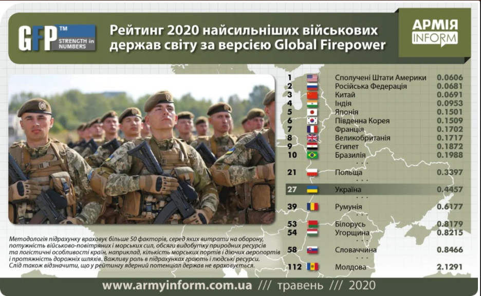 Наразі наша армія відновила свою боєздатність, а Україна відмовилася від позаблокового статусу і оголосила про свої наміри вступити в НАТО. На сьогодні, відповідно до рейтингу Global Firepower Index-2020, Збройні сили України за своєю боєздатністю займають 27 мысце серед 137 країн світу. Серед країн Європи Україна перебуває на 9 місці з 50.