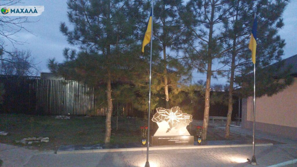 Гранітний пам’ятник представляє собою карту України, поділену на області. Україна сьогодні й там, де ступає нога окупанта. І це є ще одним нагадуванням про необхідність боронити та звільняти країну, що є священним боргом кожної людини перед своєю країною.