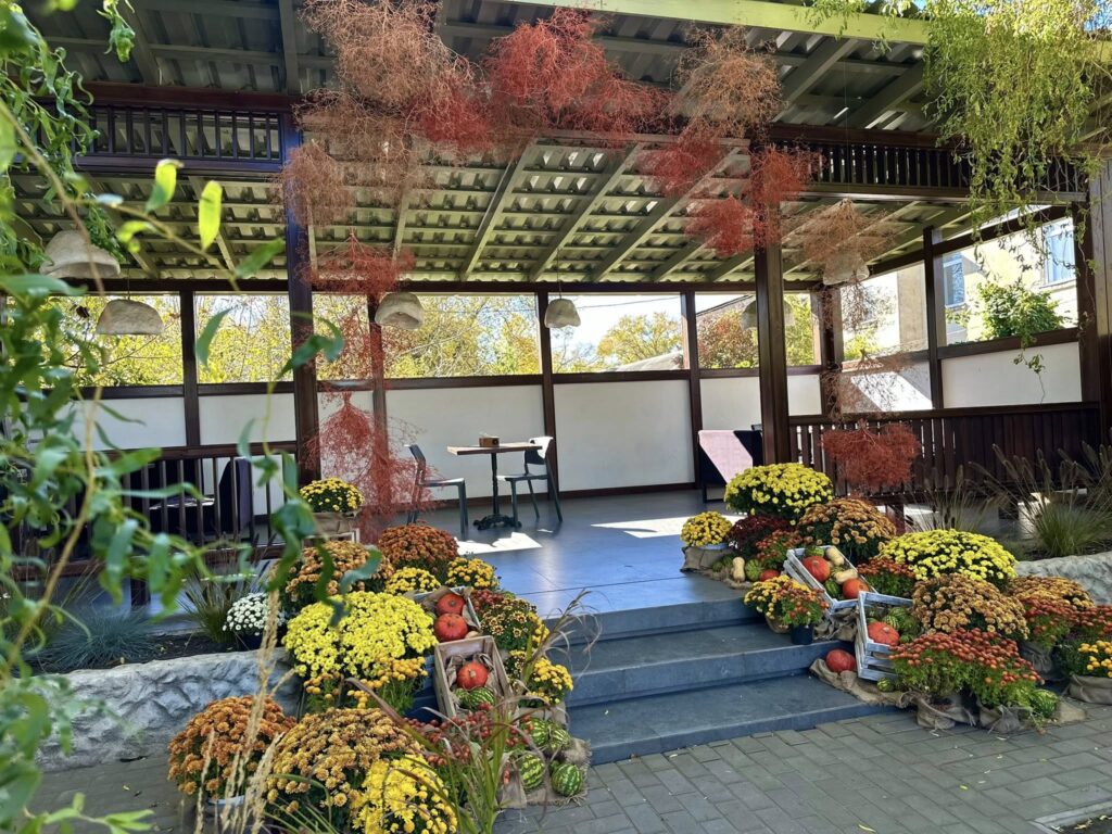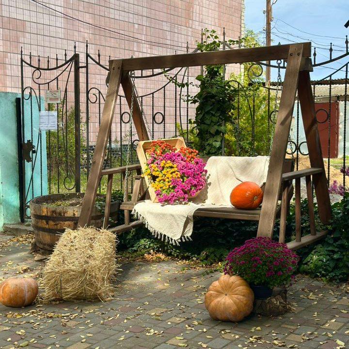 Також до акції приєдналися місцеві підприємці – колектив кафе “Казка”. Вони прикрасили свій заклад яскравими квітами, а також іншим осіннім декором, як, наприклад, гарбузи.