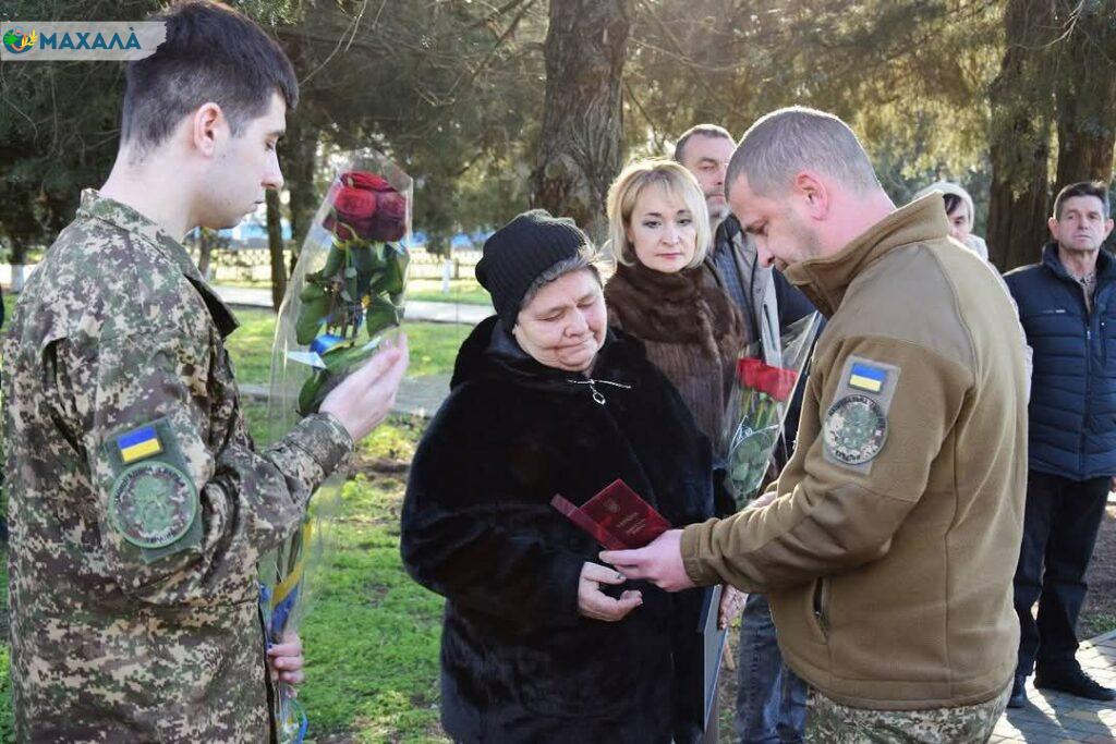 Посмертну нагороду як безмежну вдячність воїну за героїзм та жертовність вручали Ігор Лєдєнцов, заступник командира по роботі з особовим складом військової частини 11-ї бригади імені Михайла Грушевського Національної гвардії України, та Вікторія Райчева, Саратський селищний голова.
