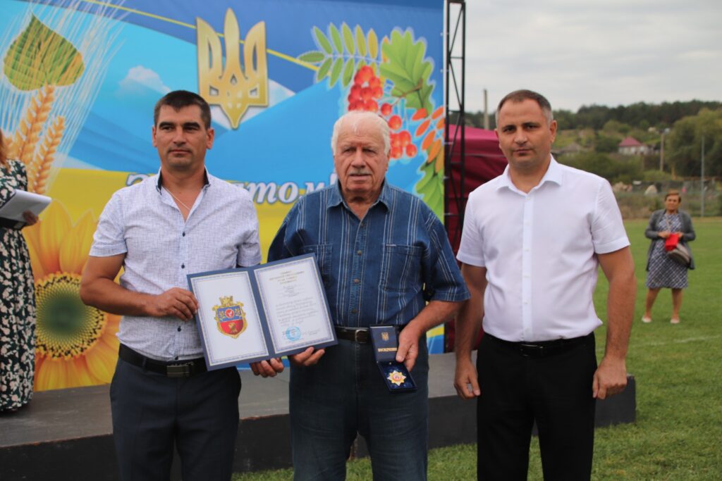 Тож у цю суботу, з нагоди свята, на місцевому стадіоні відбувся невеликий урочистий захід, гості якого вшанували пам’ять всіх загиблих від російських загарбників. Після чого відбулася урочиста церемонія нагородження кращих мешканців села. Так, Болградський міський голова Сергій Димитрієв та староста села Володимир Терзі вручили нагрудний знак та посвідчення Почесного громадянина села Табаки відомому у Болградському районі Відміннику освіти, ветерану педагогічної праці, який виростив не одне покоління табаківців, бо довгі роки керував місцевою школою – Федору Степановичу Хаджиогло.