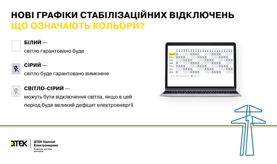 ЕНЕРГЕТИЧНА СИТУАЦІЯ: Сьогодні в Одеській області діє оновлений графік стабілізаційних відключень, які компанія ДТЕК Одеські електромережі запровадила ще вчора. За словами енергетиків, новий графік враховує поточну складну ситуацію в енергосистемі після останніх масованих обстрілів.