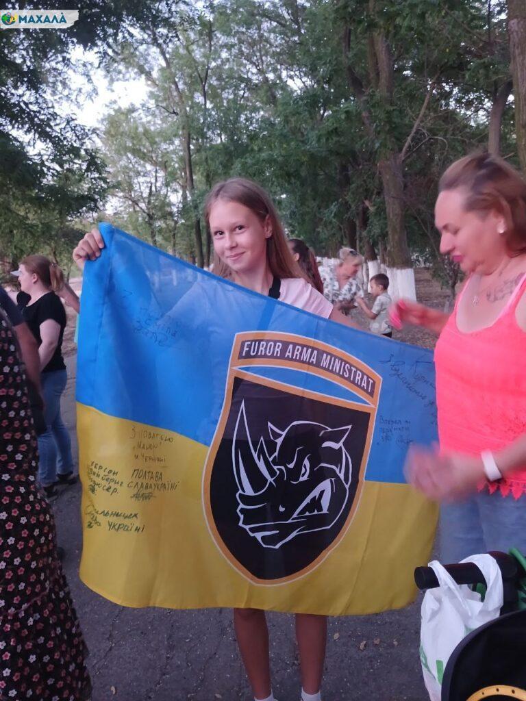 «Я дуже рада, що отримала цей прапор. Сподіваюся, що всі військовослужбовці, які розписалися на ньому, залишаться живими і повернуться додому», — поділилася Наталія.