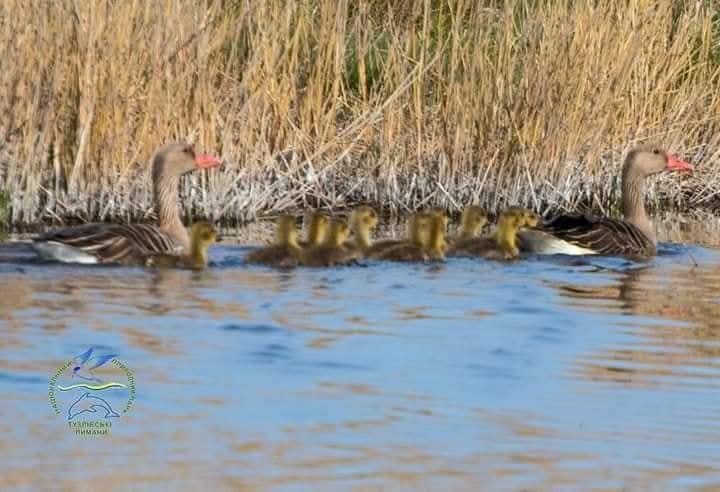 У Національному природному парку «Тузлівські лимани» зафіксували появу перших пташенят цього року. Працівники парку виявили родину сірих гусей із малечею на Джантшейському лимані. Про це повідомив еколог Іван Русєв.