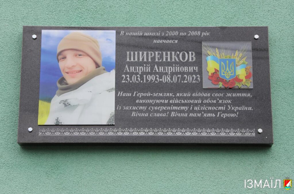 В Ізмаїльській гімназії № 11 з початковою школою відбулося урочисте відкриття меморіальної дошки на честь загиблого випускника, стрільця-снайпера Андрія Ширенкова. Про це повідомив міський голова Андрій Абрамченко.