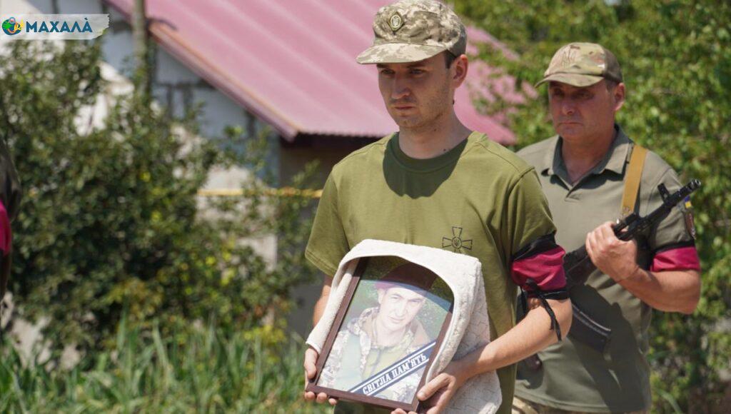 При в’їзді в село похоронну процесію зустріли місцеві жителі, які вишикувались обабіч дороги з квітами та прапорами. Після цього траурна процесія вирушила до рідного дому загиблого, де відбулася церемонія прощання.