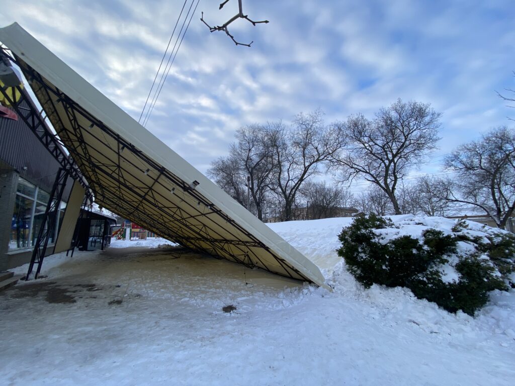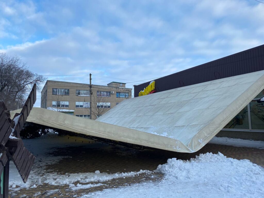 Довгоочікуваний сніг приніс в Болград не тільки радість, а й непередбачену шкоду. Так на території місцевого супермаркету “Гоша” на минулих вихідних не витримала конструкція, що тримала навіс над літнім майданчиком. Це стало відомо з відео, що надіслав виданню “Махала” підписник.