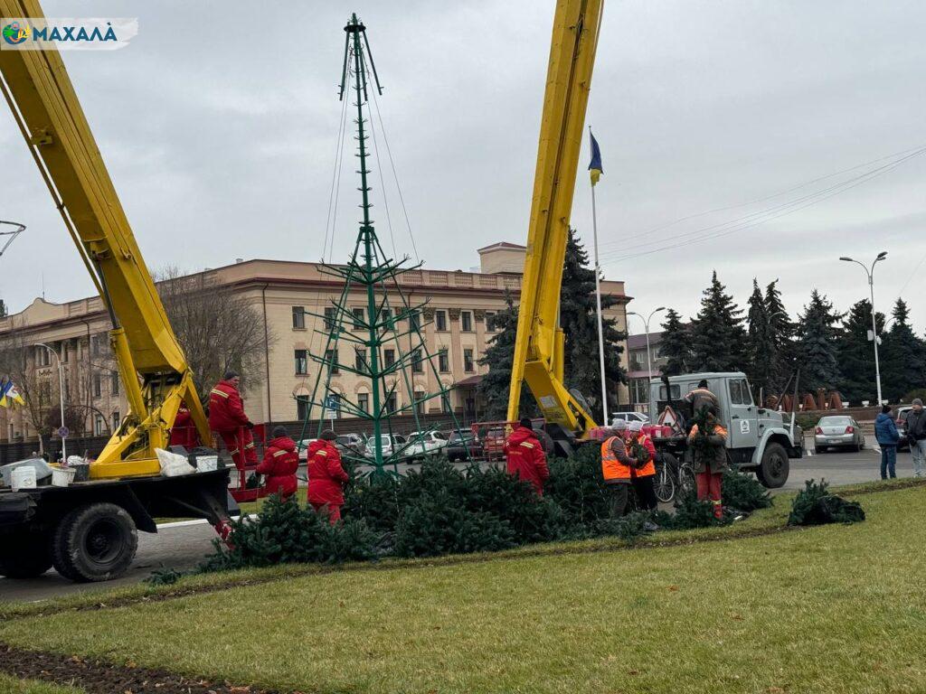 Роботи зі встановлення розпочалися вчора, 2 грудня. Протягом дня комунальні служби міста встановлювали каркас майбутньої ялинки.