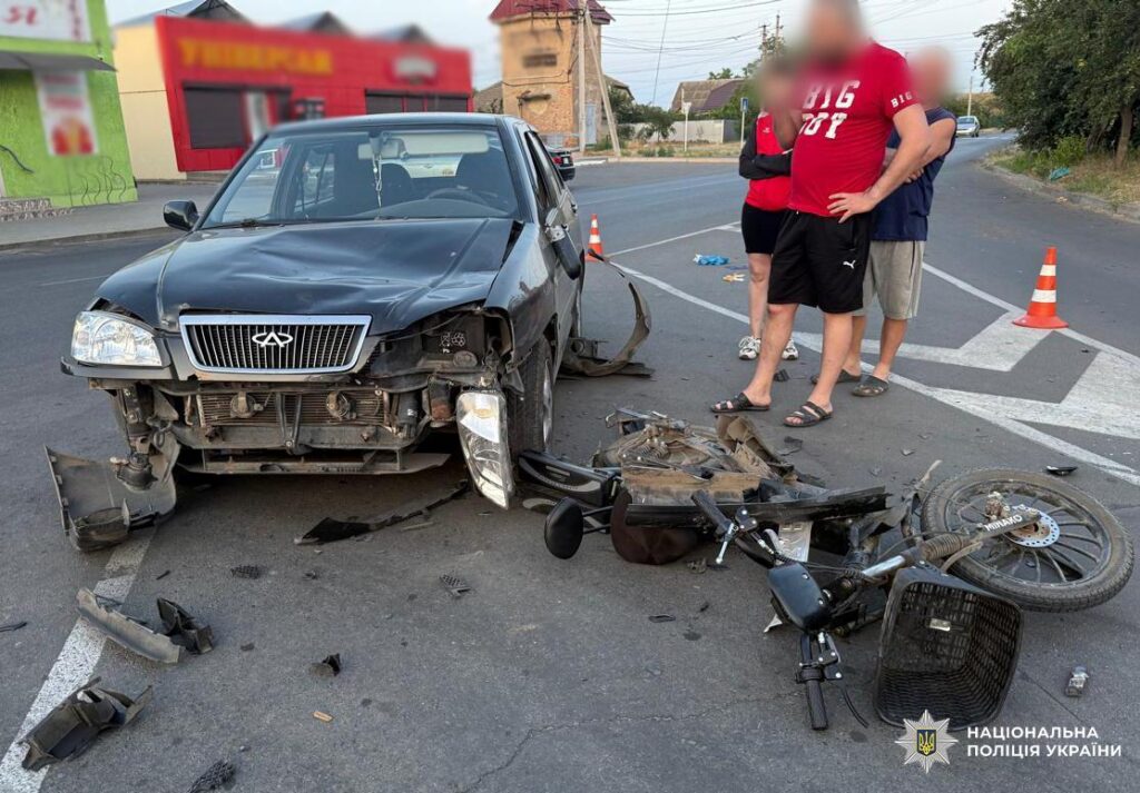 43-річний водій автомобіля «Chery», повертаючи ліворуч на нерегульованому перехресті, не помітив 51-річного чоловіка на електровелосипеді, який мав перевагу в русі, та здійснив на нього наїзд. З місця пригоди керманича двоколісника було госпіталізовано до лікарні с чисельними травмами. Водій автівки не постраждав. Чоловіка перевірили на стан сп’яніння — він був тверезий.