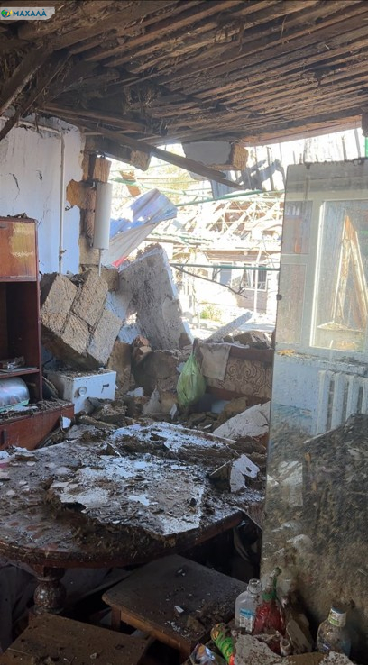 «Згорів і звалився весь дах, вилетіли вікна, обвалилася стіна. Металевий паркан перетворився на перекручене місиво. Серйозно пошкоджено господарські будівлі: з гаража, над яким знаходилася невелика житлова кімната, знесло дах, а вікна та двері вибило вибухом. Усередині самого будинку рятувати практично нема чого: коли пожежники гасили, все це падало, там глина, все перетворилося на «кашу» – і меблі, і всі речі. В останній кімнаті просто фальш-стеля висить, але самої даху немає», – із гіркотою констатує жінка.
