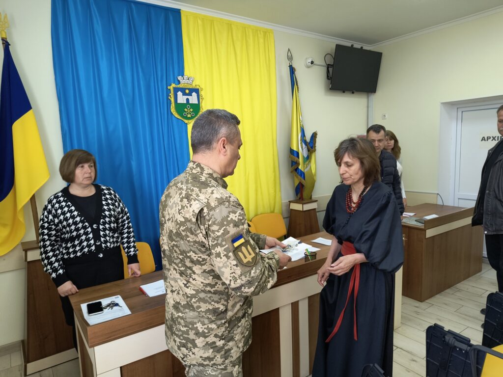 На тижні представник другого відділу Білгород-Дністровського РТЦК та СП в залі міської ради під час чергового засідання виконавчого комітету вручив нагороду рідним загиблих матері Олександра та дочці Романа.