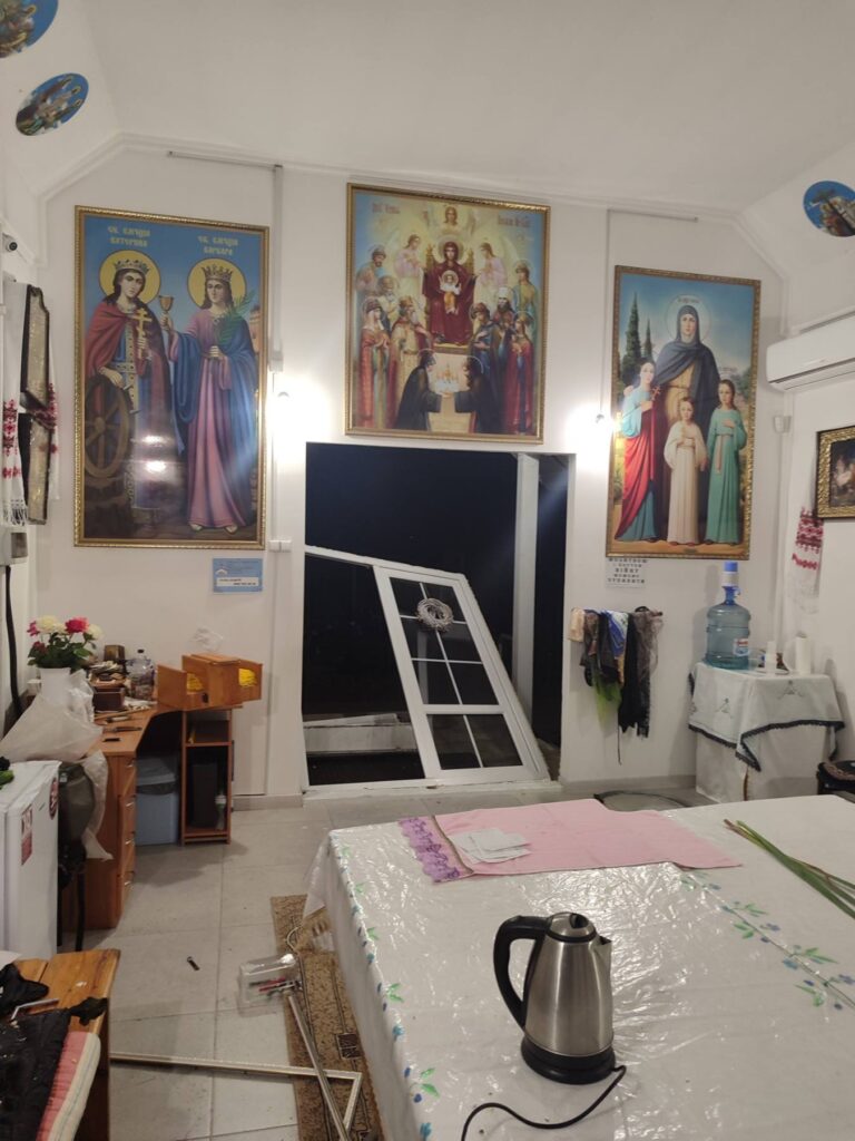 Ворожий шахед прилетів на подвір’я храму о 00:01. В результаті цього храм зазнав значних ушкоджень: вибиті вікна і двері, пошкоджені ікони та інше начиння. Окрім цього у дворі є вирва від російського снаряда.