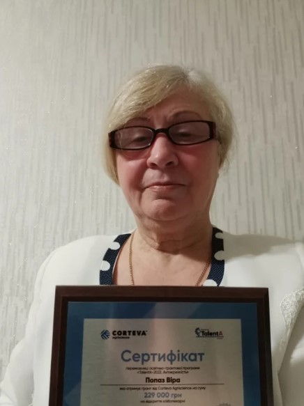 У 2020 році Віра Попаз потрапила на навчання в освітньо-грантову програму для жінок-фермерок, які мешкають у сільській місцевості, TalentA, яку проводить та фінансує Corteva Agriscience. Про таку можливість пані Вірі розповіли знайомі.