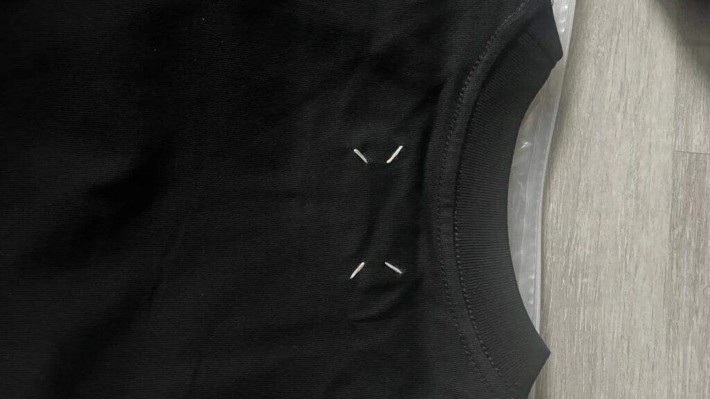 На багатьох виробах з колекцій бренду можна помітити, що бирка пришита до основного полотна чотирма стежками білих ниток, які добре видно на лицьовій стороні. Це ще одна деталь, що робить брендові речі впізнаваними, — своєрідний підпис Maison Margiela. Ці стежки завжди виконують дуже акуратно, тому їх можна сприйняти за елемент декору. Проте знавці розуміють, що річ належить до одного з провідних брендів люкс-сегменту.