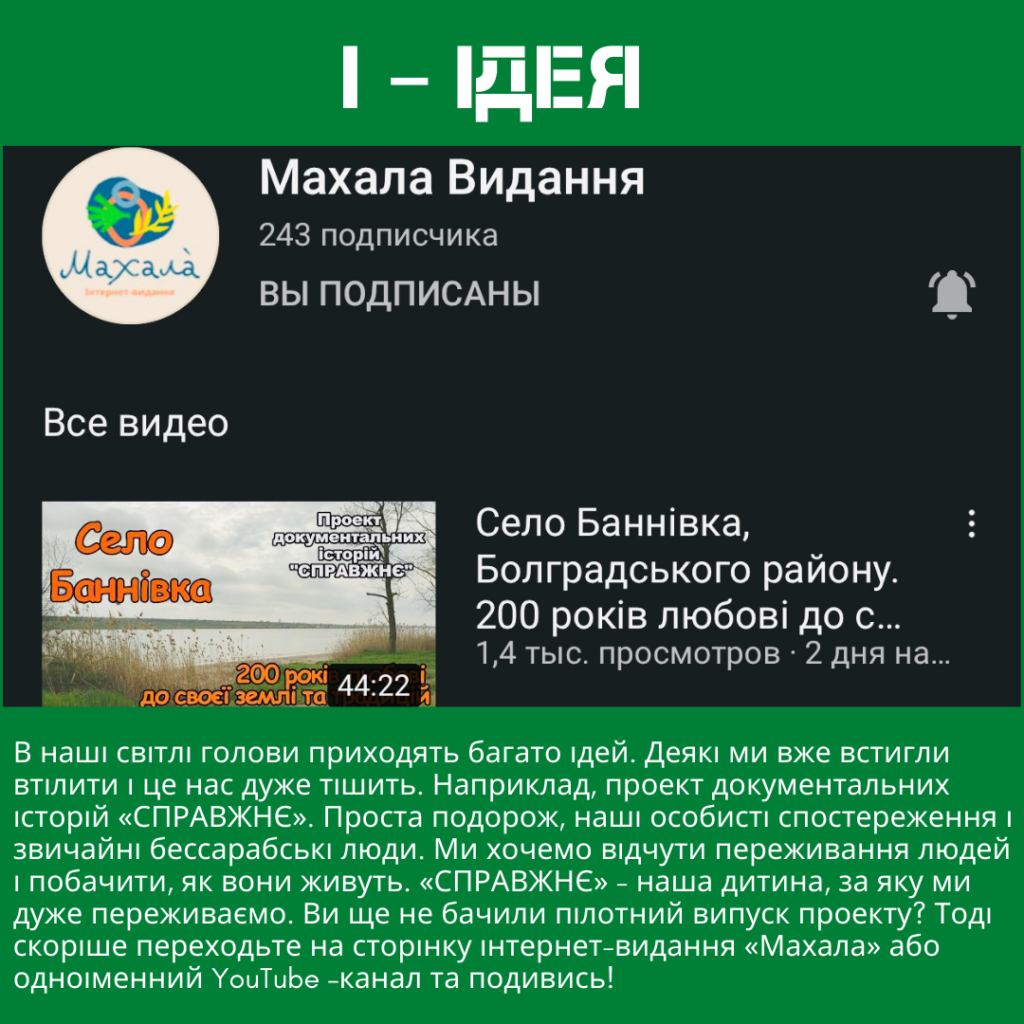Ви ще не бачили пілотний випуск проекту? Тоді скоріше переходьте на сторінку інтернет-видання «Махала» або одноіменний YouTube –канал та подивись!