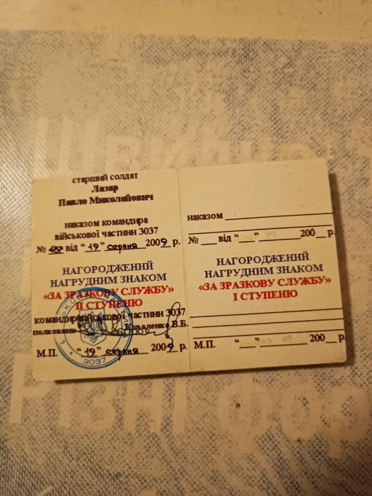 Воїн сумлінно та професійно виконував свій військовий обов’язок, був опорою та підтримкою для бойових товаришів.
