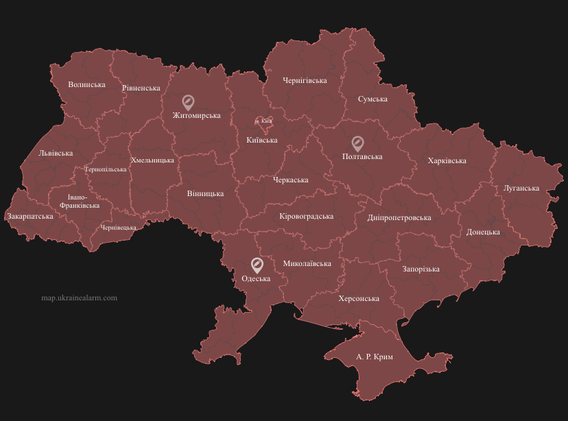 Сигнал повітряної тривоги було оголошено в 05:33. ЗМІ повідомляють про роботу ППО над багатьма областями України, в тому числі й над Одесщиною.