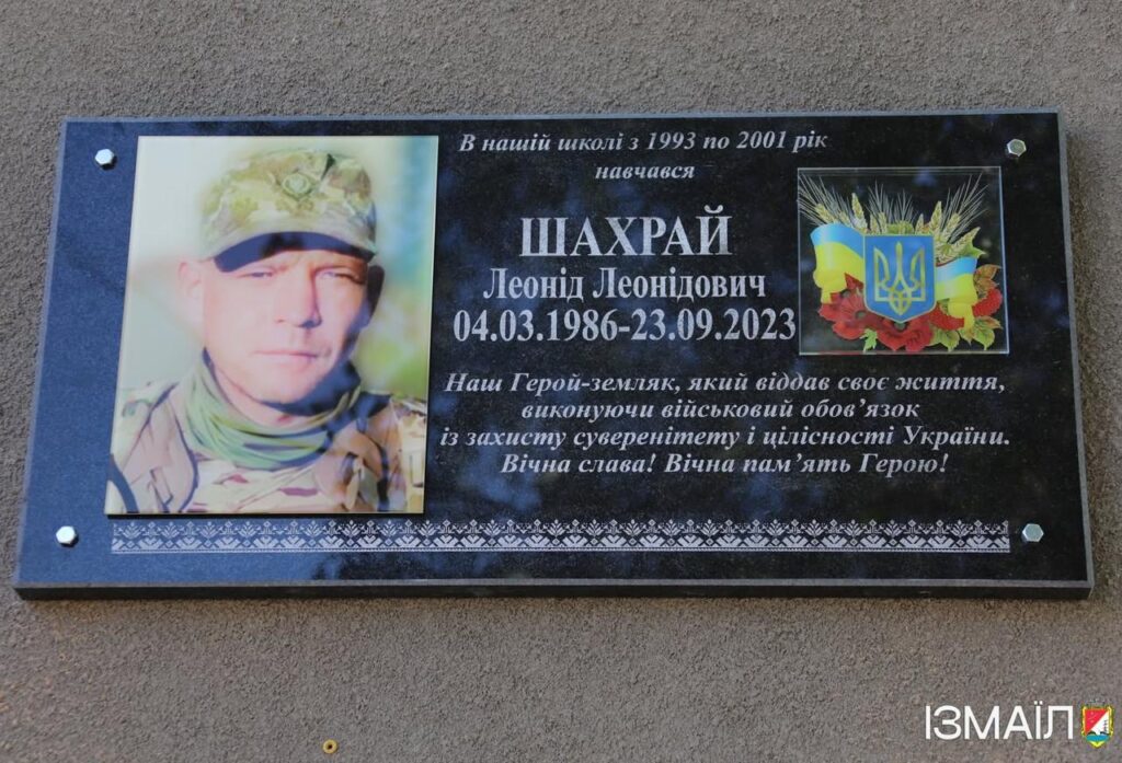 Сьогодні, 23 вересня, в Ізмаїльській гімназії №3 відкрили меморіальну дошку на честь захисника України, механіка-водія механізованого батальйону 28 окремої механізованої бригади імені Лицарів Зимового Походу Леоніда Шахрая. Про це повідомив міський голова Андрій Абрамченко.
